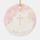 Ornamento ornamento de oraciones de color rosa de las flores de la comunión / Keepsake Este hermoso diseño de la Primera Comunión Santa tiene un contorno floral rosa de cruz sobre fondo de acuarela rosa pastel. Aprecie los grandes recuerdos de la primera comunión sagrada de su hijo con este hermoso diseño. Este diseño también es ideal para las Navidades y los bautizos. Consulte los accesorios, papelería y regalos de comunión que correspondan.