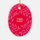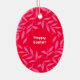 Ornamento moderno de cerámica de Pascua con ramas rosas sobre un fondo rojo. Personaliza esto con tus propios deseos, nombre o cualquier cosa que quieras.