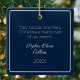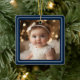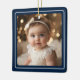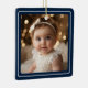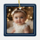Imagen azul moderna de bebé Foto Minimalista de festividad festividad Ornamento cerámico: Este elegante y moderno adorno celebra la primera Navidad del bebé con un lado mostrando su foto favorita de bebé enmarcada con un contorno blanco. El otro lado presenta el dulce texto, "Manos pequeñas, pies pequeños, recuerdos Navidades muy dulces", junto con un nombre personalizado en letra de guión y el año, rodeado por una minimalista línea blanca. Perfecto para que los padres recién llegados conmemoren la primera temporada navideña de un bebé, añadiendo un toque elegante y sentimental al árbol de Navidad. Sube una foto de bebé favorita por un lado, luego agrega el nombre y el año al revés. Haga clic en "Personalizar esta plantilla" para conservar un recuerdos de Navidades preciosos.