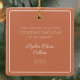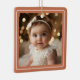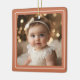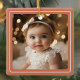 Foto del bebé Terracota Navidades rusos modernos Guión Ornamento cerámico: Este elegante y moderno adorno celebra la primera Navidad del bebé con un lado mostrando su foto favorita del bebé enmarcada por un contorno blanco. El otro lado presenta el dulce texto, "Manos pequeñas, pies pequeños, recuerdos Navidades muy dulces", junto con un nombre personalizado en letra de guión y el año, rodeado por una minimalista línea blanca. Perfecto para que los padres recién llegados conmemoren la primera temporada navideña de un bebé, añadiendo un toque elegante y sentimental al árbol de Navidad. Sube una foto de bebé favorita por un lado, luego agrega el nombre y el año al revés. Haga clic en "Personalizar esta plantilla" para conservar un recuerdos de Navidades preciosos.