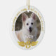 Crea un adorno de honor de recuerdo de fotos para tu adorado perro con una foto, el dicho de que TUS ALAS ESTABAN LISTAS PERO NUESTROS CORAZONES NO LO ESTABAN, una imagen de una huella con el corazón, las alas de ángel y el halo en oro y personalizada con su nombre y fechas. La muestra se muestra en un ornamento cerámico redondo - otros estilos de ornamentos están disponibles en la página de pedidos o el diseño se puede transferir a otros estilos de ornamentos u otro producto para un homenaje conmemorativo. ASISTENCIA: Para obtener ayuda con la modificación o personalización del diseño, el cambio de color, el cambio de tamaño o la transferencia del diseño a otro producto, póngase en contacto con el diseñador ANTES DE PEDERLO a través de la pestaña del MENSAJE de chat de Zazzle que aparece a continuación o envíe un correo electrónico a makeitaboutyoustore@gmail.com.