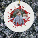 Una festividad de pájaros y caderas de rosa rodea tu propia foto en esta decoración de vacaciones de Navidades rojos y blancos de estilo bonito escandinavo. Arte original de Nic Squirrell. Crédito de la foto: Photography © Storytree Studios, Stanford, CA