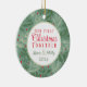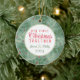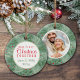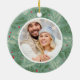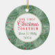 Personalizar este adorno con tu propia foto, nombre y fecha. Un bonito borde de pinos y ramas verdes en verdes y rojos rodea tu imagen. Un adorno cerámico de "Nuestra primera Navidad juntos" con tu foto hace un gran placer.