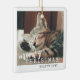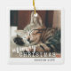 Ornamento de fotos de gatos personalizado con dos fotos de gatos o gatitos con "Navidades de mimbre" y cada nombre en un moderno ornamento de cerámica blanca con un elegante guión único y una combinación de tipografía de máquina de escribir. Perfecto para 2 gatos, o diferentes fotos de 1 gato.