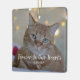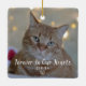 Adorno de árbol de Navidad con foto de gato y nombre "Por siempre en nuestros corazones" memorial de mascota personalizado.