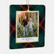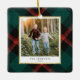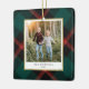 Celebre la temporada con nuestro exquisito ornamento de fotos de la tradición de las setas rojas y verdes. Tu foto favorita está bordeada con un delicado borde de Relieve metalizado dorado, con un fondo de manta tradicional roja y verde. Este adorno de árbol de Navidad exuda elegancia, capturando bellamente el espíritu navideño.