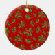 Adorno de árbol de Navidad de diciembre con espacio para personalizar o personalizar con el nombre de su elección en una fuente de escritura elegante, una foto personal de su perro o gato y la fecha del año de su elección. Con un bonito fondo estacional de hojas de acebo verdes y patrón de bayas rojas como decoración. Recuerdo único que los abuelos de sus hijos, otros miembros de la familia o sus amigos amarán.
