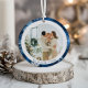 Adorno De Cerámica Foto de Navidad de Copo de Nieve Azul Elegante