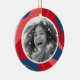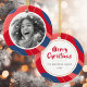 Ornamento navideño con foto personalizado y borde rojo, rosa y azul oscuro. Saludo de personalizable, apellido y año atrás.