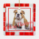 Adorno De Cerámica Foto de perro de Bulldog de seda roja Feliz Navida