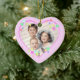 Ornamento de fotos de corazón rosado para alguien que amas. Añadir una foto y un texto favoritos. Personalizar como un aguijón que siempre será apreciado.