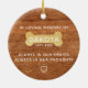 Apreciar los maravillosos recuerdos para siempre con nuestros adornos de navidad conmemorativos de nuestros mascotas personalizados. Nuestro diseño presenta un marco rústico de corte de granos de madera. Personalice con su propio mensaje conmemorativo, su nombre de mascota, año de nacimiento y año pasado. La parte revisada presenta un fondo falso de madera con el nombre de los mascotas colocado en una placa falsa de nombre óseo dorado, junto con el texto conmemorativo y su propio mensaje personal.