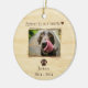 Honra la memoria de tu querido perro con este amoroso adorno conmemorativo, diseñado para celebrar el amor y la alegría que trajeron a tu vida. Con un fondo de madera clara adornado con huellas de pata y la conmovedora frase "Para siempre en nuestros corazones" con un corazón al final, este adorno ofrece espacio para una preciada foto de tu perro, junto con los años de su vida. Este adorno personalizado es un recordatorio reconfortante del vínculo que compartiste, lo que hace un hermoso tributo para colgar en tu árbol de Navidad o mostrar en tu hogar todo el año.