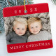 Ornamento cerámico con tu foto personalizado, el año en curso y el texto de personalizable "Feliz Navidad"