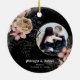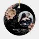 Bonito adorno oscuro con círculo dorado y florido beige y rosa con helechos, ramas, plumas y bayas sobre un fondo negro. La tipografía gótica de letras negras se suma al diseño. Personaliza tu foto especial. Un regalo perfecto para la pareja recién casada. Consulte la coordinación de artículos en nuestra tienda, Enchanted Finch, o póngase en contacto con nosotros para obtener artículos adicionales.