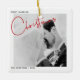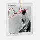 Recuerde a sus primeros Navidades casados para siempre con este moderno y minimalista adorno de vacaciones en blanco y negro, que incluye a los 'Navidades en la moderna tipografía con letras de manos rojas y su foto boda favorita. La foto se repite en la parte posterior, con los detalles de la fecha de su boda superpuestos. Copyright Anastasia Surridge para The Navidades Shop, todos los derechos reservados.