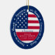 Para siempre en nuestros corazones. Honra a tu soldado o veterano militar con un adorno conmemorativo de fotos personalizado. Este recuerdo único de la bandera estadounidense adornado es el regalo perfecto para usted, familia o amigos, para rendir homenaje a su soldado y veterano militar. Este adorno conmemorativo patriótico cuenta con una bandera estadounidense moderna, Cita "Para siempre en nuestros corazones" ~ "En la memoria amorosa". Personalizar con foto, nombre y fecha favoritos. Perfecto para un monumento a los Navidades. DERECHOS RESERVADOS © 2020 Judy Burrows, Black Dog Art - Todos los derechos reservados. Moderna foto militar veterana bandera de los EE.UU. conmemoración de adorno cerámico