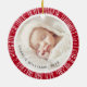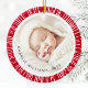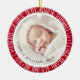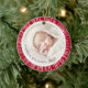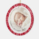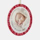 Ornamento rojo con fotos personalizados dentro de un borde retro de explosión de sol. Personalizable de texto como superposición sobre las fotos.