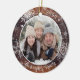 Crea tu propio ornamento personalizado para el conservador de fotos con plancha rústico de madera, copos de nieve y nieve y tu texto personalizado (la muestra muestra muestra el nombre de la familia y el año). El diseño está duplicado en ambos lados. La muestra se muestra en un ornamento de cerámica redondeada, mientras que otros estilos están disponibles en la página de pedidos. ASISTENCIA: Para obtener ayuda con la modificación del diseño, la personalización, el cambio de color o la transferencia del diseño a otro producto, póngase en contacto con el diseñador ANTES DE PEDERLO a través de la pestaña MENSAJE de chat de Zazzle que aparece a continuación o envíe un correo electrónico a makeitaboutyoustore@gmail.com.