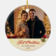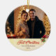 Celebre la temporada con este elegante adorno de cerámica con un ilustracion acuarela de hojas huecas, bayas rojas y flores blancas, ambientado en un suave fondo crema con una textura ligeramente angustiada. El diseño evoca el encanto vintage de la Navidad, la elegancia botánica de las vacaciones y el acogedor estilo de hígge. Debajo de la obra de arte, un texto editable permite personalizar el adorno con un nombre y un año de familia, lo que lo convierte en un sincero recuerdo de tu árbol o en un regalo reflexivo. Perfecto para la alegre personalización navideña, la alegre decoración de personalizado de berry y el estilo único de las casas de campo. Cuelgue orgullosamente o dáselo a sus seres queridos — una pieza atemporal que combina tradición con calidez.