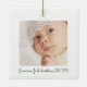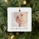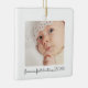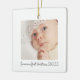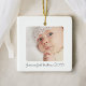 Celebra la primera Navidad de tu bebé con este adorable ornamento personalizado. El diseño moderno y minimalista incluye una preciosa foto de su recién nacido, lo que lo convierte en un conservador único. Añade el nombre de tu hijo y el dicho "Primera Navidad" junto con el año para crear un querido recuerdo que traerá alegría en los años venideros. Este regalo personalizado es perfecto para capturar la magia de este hito especial. Cuélguelo en su árbol o denlo como un regalo para conmemorar esta inolvidable ocasión.