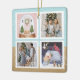 Divertido, festivo y único estampado postal de vacaciones diseño de ornamento de fotos de vacaciones. Diseño festivo inspirado en estampado postal con las escenas originales de ilustracion de sellos postales hechos a mano por nuestros Navidades. Cada estampilla presenta una escena festiva única con valor de sello y año mostrado en los sellos con marcas de franqueo. Personaliza con dos de tus fotos favoritas. En el reverso aparece la foto junto con sellos y firmas familiares. Todas las obras de arte son originales y de dibujos hechos a mano por Moodthology Papery.
