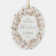 Celebre la primera Navidad del bebé con este adorno de sake, con una corona de flores silvestres en tonos tierra neutros y colores pastel. La palabra "Navidades" aparece en un delicado guión de escritura a mano. Personalice el ornamento con el nombre del bebé y el año con el tipo de letra sans serif en un lado y su foto favorita en el otro.