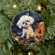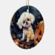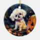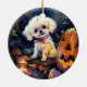Adorno De Cerámica Frisa de Bichon de Halloween con calabazas asustad
