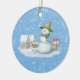 Fun Cute Merry Christmas Snow Holiday Ceramic Ornament es divertido con nieve fluyendo en el muñeco de nieve, ratones y casas en un maravilloso país invernal.