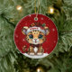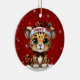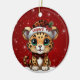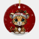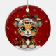 Fun Leopard Red Sparkle Animal Print Lover ceramic ornament featuring a fun blend of spots and a cute Christmas cartoon graphic showcasing a spotted kitten with personalizable santa hats. Customize by changing the text name. Perfect for feline kitty cat lovers, making it a great gift for any feline fan. Same design is on both sides, which insures your decorations always look festive and complete. Add a unique touch of wild holiday spirit cheer to your tree decor with this customizable one-of-a-kind, purr-fect Xmas season keepsake! 🐆🐈🐾