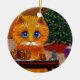 Adorno De Cerámica Funny Christmas Orange Cat Art Creationarts