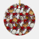 A funny dog choir on a Christmas tree ornament. Featuring six toy dog breeds singing carols, including a Dachshund, Yorkie, Bichon Frise, Chihuahua, a Pomeranian and a Pug. Each doggy choirboy is wearing traditional red and white robes and holding a hymn book and candle.