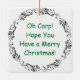 Divertido ornamento de feriado de Navidades de juego de palabras. ¡Santo Carpa! ¡Que tengas una Feliz Navidad! Comidas divertidas y realistas. Pescado, patatas fritas y requesones.