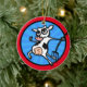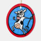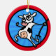 Una vaca divertida lucha contra el ilustracion círculo navidades de cerámica ornamento de vacaciones.Los colores de fondo frontales y posteriores así como la fecha y el texto pueden ser personalizados.