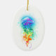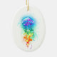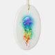 Grandes medusas de azulejo brillantes, de dibujos artísticos, con largos tentáculos en blanco, pintadas con fondo multicolor de acuarela. Mariscas arcoiris.