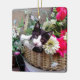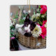 Este pequeño gatito de esmoquin parece haber encontrado nuevas cosas de juego en esta canasta de flores. ¡Snoop ya tiene diez años!