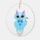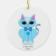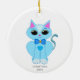 Adorno De Cerámica Gatito y texto azul claro lindo