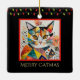 Este adorno artístico de gatos bohemios es ideal para los amantes de los gatos o para los que disfrutan de un toque único en la decoración de los Navidades habituales. Presenta un gato artesano con puntos y bloques de color en rojo, naranja, verde verde azulado oscuro, mostaza y negro, con el lema "Feliz Navidad" debajo con elegantes letras doradas vintage. Si prefiere un texto diferente, como el nombre del gato de su destinatario o del suyo, puede editarlo fácilmente. El fondo es negro y rojo, y adorno adornado con luces de Navidad brillantes encima. Material gráfico adquirido a través de: https://grafixdeals.com/