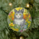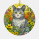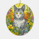 Bonito colorido gato caprichoso y flores de arte floral amarillo.