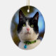 Ornamento cerámico de gato de pelo corto negro y blanco