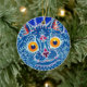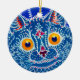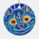Ornamento con la pintura animal de Louis Wain Un gato en estilo gótico (1860-1939). Un gato azul psicodélico mira amistosamente con ojos amarillos al espectador. Un regalo maravilloso para los amantes de los gatos y el arte inglés.