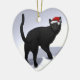 Adorno De Cerámica Gato negro con Gorra de Santa Claus