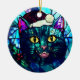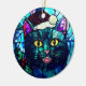 Adorno De Cerámica Gato negro de Navidad con vidrieras maullando