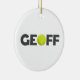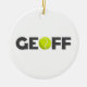 El nombre Geoff con la letra O como una pelota de tenis. Para una persona que ama el tenis o un entrenador de tenis, se pueden cambiar los colores.