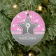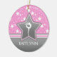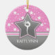 Ornamento redondo del navidad de la gimnasia hermosa con un fondo rosado cubierto en las estrellas blancas. Tiene una estrella gris con una silueta blanca, y una bandera gris con una raya rosada y blanca. ¡Añada su nombre antes de que usted ordene! ¡Usted puede también utilizar el "personalizar él" botón para escoger una diversa fuente o color para el texto!