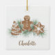 Este adorno navideño está decorado con Navidades acuáticos, galletas de pan de jengibre y follaje. Personalizable fácilmente con su nombre o monograma. Porque creamos nuestra obra de arte no encontrarás esta imagen exacta de otros diseñadores. Acuarela original © Michele Davies.