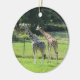 Un par de hermosas jirafas, una con manchas marrones oscuras y la otra con manchas marrones toques.