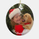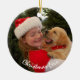 What could be more exciting than a new puppy at Christmas! Sweet young girl in Santa hat holds her new puppy. Puppy wears a red collar. Christmas tree lot is in the background. A fun gift or decoration for your tree. Stunning Christmas ornaments for your home or for gifts. Easily change text to your own. Also change the photo to one of your own if you wish.