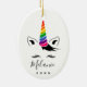 El ornamento cerámico Glam Rainbow Unicorn diseñado por la Enchantcapy Design Company presenta el contorno de la cara de un unicornio con pestañas glamorosas, orejas, un peinado y un fabuloso cuerno de unicornio arcoiris brillante. Personaliza tu elección de nombre y año! Perfecto para el amante del unicornio en tu vida.