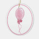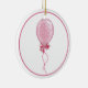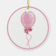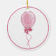 Ornamento redondo de cerámica con una imagen a ambos lados de un bonito globo rosado atado con cinta rosada y acabado con un arco rosado bonito sobre blanco. Borde rosa. Ver el ornamento de la escultura de fotos acrílicas a juego. Ver toda la colección de Ornamentos de Cumpleaños en los TOUCHES ESPECIALES | Sección de favoritos de partido.